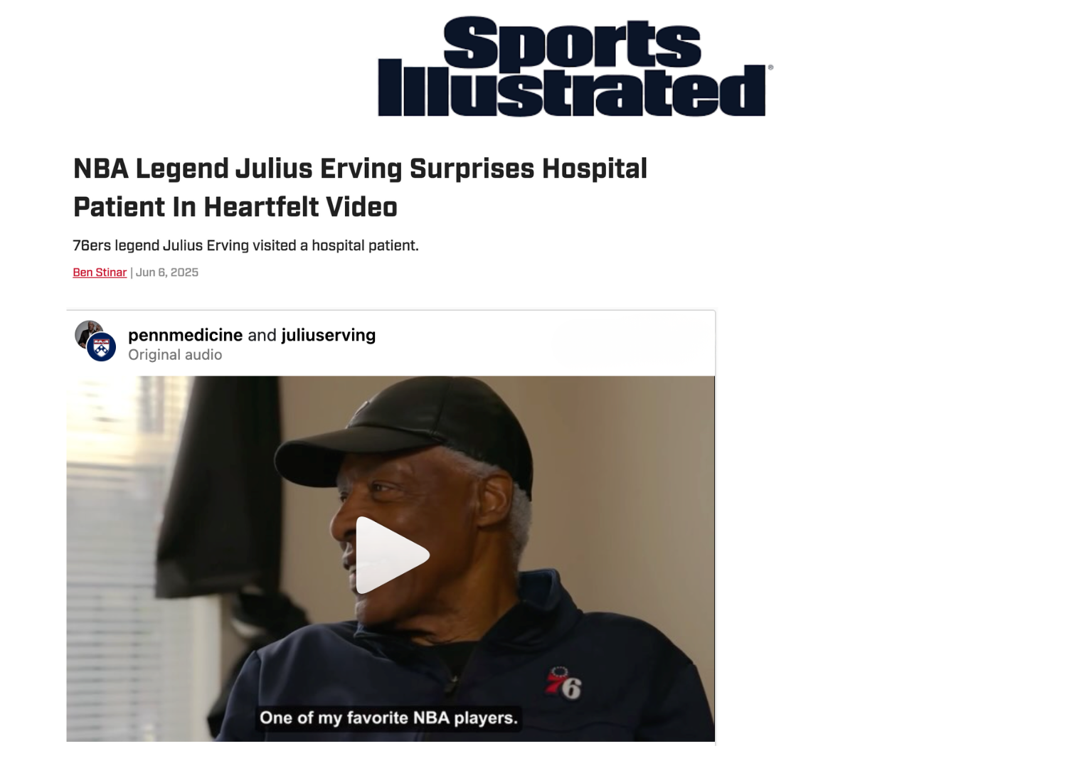 Penn Medicine wanted to give Sean, a lifelong Sixers fan and patient, a day he never forget — a “house call” from the legendary Julius “Dr. J” Erving. Working with Penn Medicine’s at-home care team, we captured the moment as it unfolded at Sean’s home.